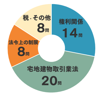 宅地建物取引士は、権利関係・宅建業法・税関係・法令上の制限・その他の項目での50点満点の試験です。