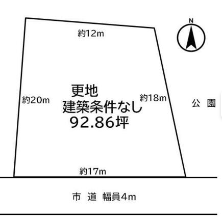 ゆとりの92坪です。南側が道路、東側が公園なので陽当たりも良好。法令等制限:埋蔵文化財包蔵地内・現況は宅地です(既存建物解体撤去済み)・売主にて土地測量、隣地境界確認後に引き渡します。・上水道は引込済み(量水器設置要)・浄化槽処理区域(浄化槽設置要)