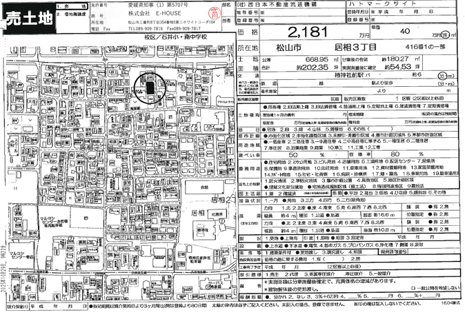 法令等制限:文化財保護法(埋蔵文化財包蔵地で、再建築前に試掘調査必要)本件土地の面積は仮丈量によるもので、分筆測量後の実測面積による取引とするため、面積の増減が生じます。また、本件土地は建物解体後の更地渡しとします。スーパーマルヨシセンターまで徒歩約700m
