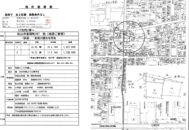 新規分譲 2区画 建築条件なし 生石小 スーパーコンビニ近く生活便利!