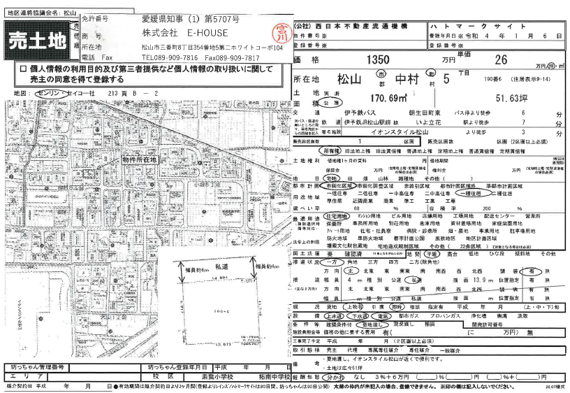 伊予鉄道横河原線 / いよ立花駅 徒歩7分 接道 北 4.0m 私道 接面13.9m