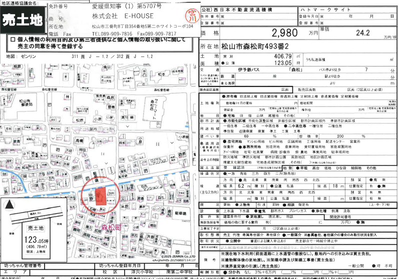 伊予鉄バス 森松 バス停 徒歩7分 接道 北側 6.2m 公道 接面18.0m