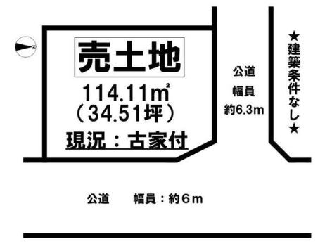伊予鉄道高浜線 / 山西駅 徒歩11分 伊予鉄バス 大可賀バス停 停歩400m 北 6.3m 公道 接面7.7m・東 6.0m 公道 接面9.9m・二方道路