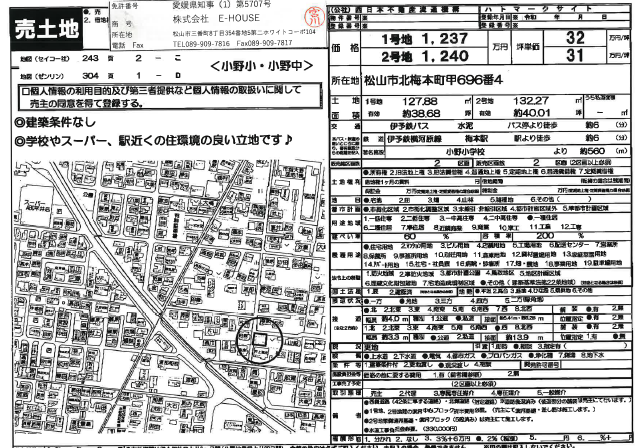 伊予鉄道横河原線 / 梅本駅 徒歩6分 接道 北 4.0m 私道 接面5.4m・西 3.3m 公道 接面13.9m