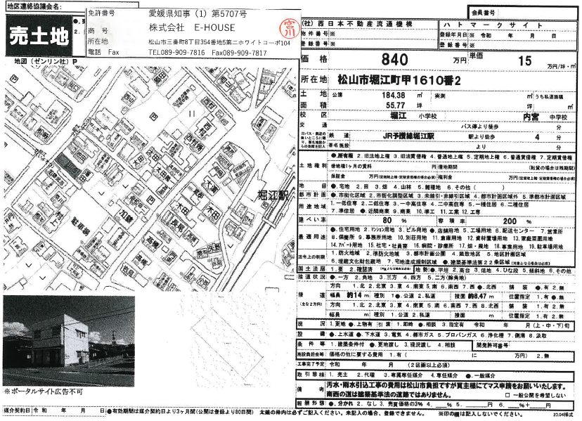 JR予讃線 / 堀江駅 徒歩4分 接道 北西 14.0m 接面8.4m