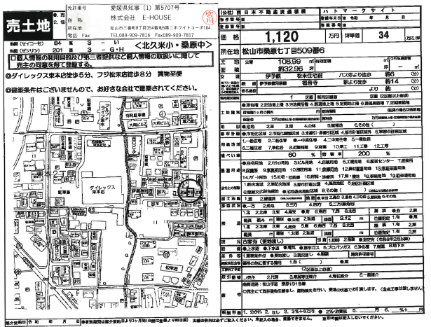 伊予鉄バス 松末住宅前 徒歩6分 接道 南側 4.0m 公道 接面9.1m